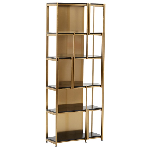 現(xiàn)代輕奢香檳金不銹鋼書架_不銹鋼書架書柜金屬制品圖