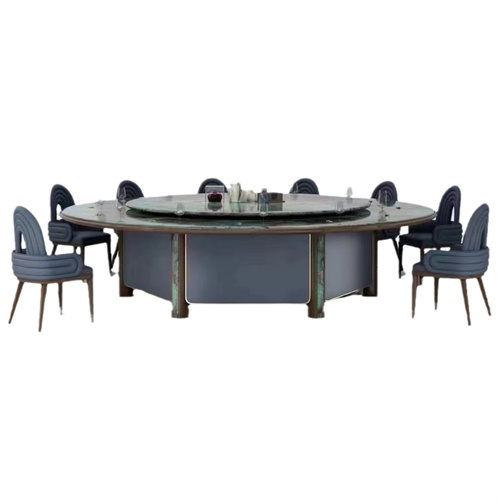 這款酒店豪華20人大理石電動餐桌大圓桌是舉辦盛大宴會、會議或派對的理想選擇。這款餐桌采用天然大理石臺面,高雅、耐用、易于清潔。臺面由實木底座支撐,堅固穩(wěn)定。餐桌還配有電動旋轉(zhuǎn)托盤,可以通過遙控器或開關(guān)控制,方便高效地上菜。