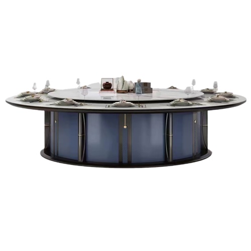 酒店會所時尚輕奢大理石電動餐桌大圓桌圖