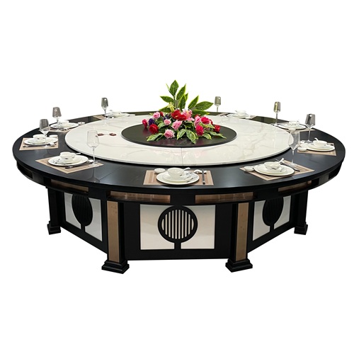 新款高級(jí)會(huì)所新中式自動(dòng)旋轉(zhuǎn)電動(dòng)餐桌圖