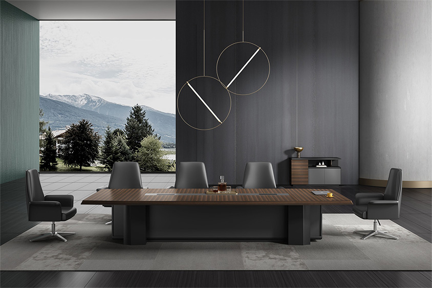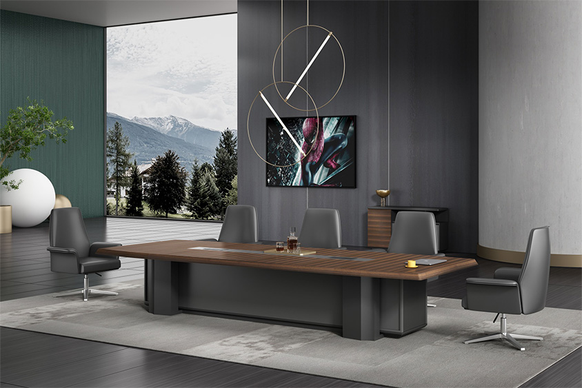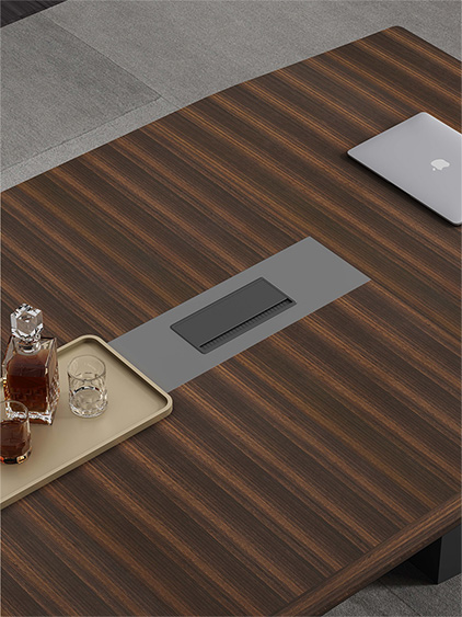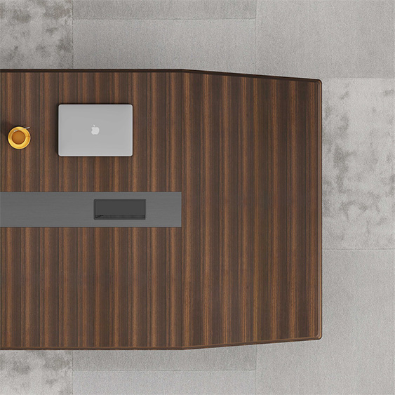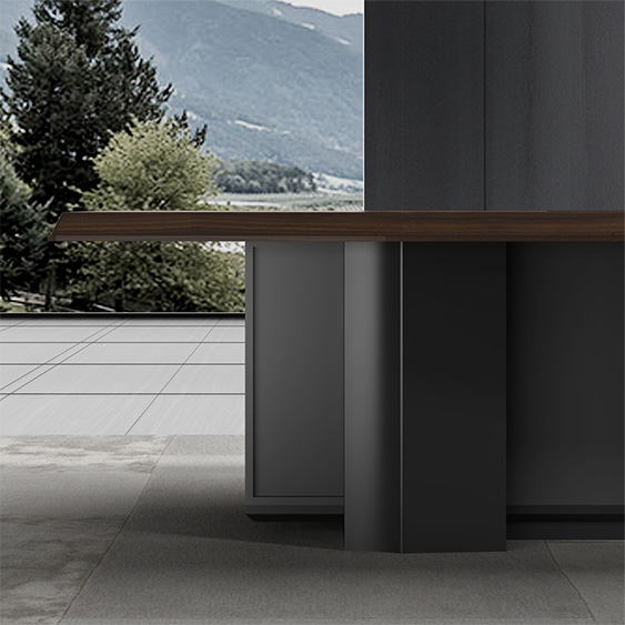浩韻系列 深邃神秘,時尚富有魅力。態(tài)勢沉穩(wěn)又不失靈動,富有個性而不張揚(yáng)。設(shè)計靈感源于建筑的傾斜式支撐給人帶來的沖擊感。不同材質(zhì)的相互碰撞,實(shí)木結(jié)合金屬嵌件,充滿現(xiàn)代氣息。在現(xiàn)有的辦公功能上結(jié)合隱藏的電動升降臺,將科技與美學(xué)完美結(jié)合,打造時尚簡潔的現(xiàn)代化辦公空間。